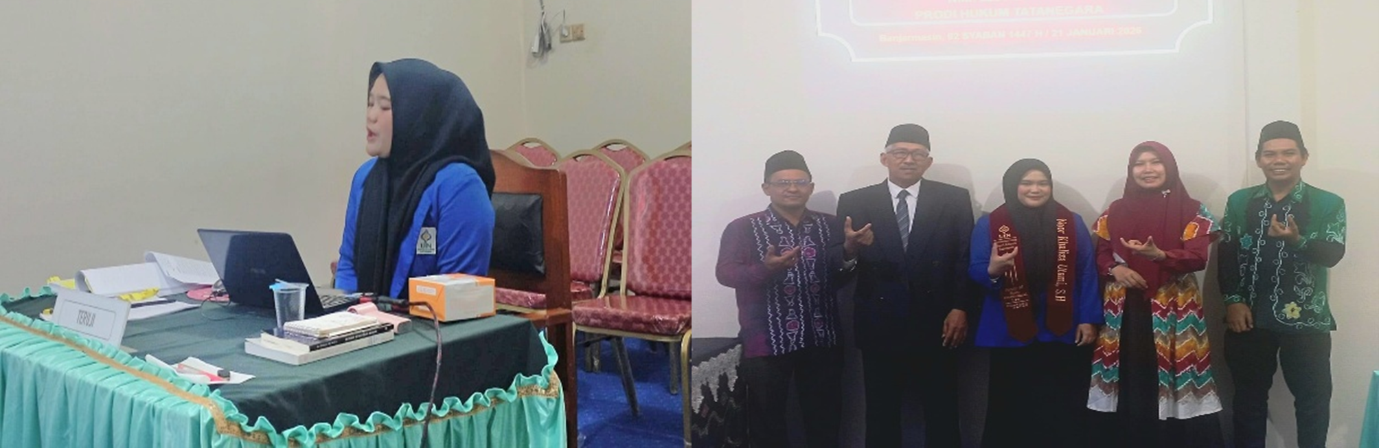 Gambar. Foto Norliana mahasiswa Hukum Tata Negara menjalani ujian skripsi