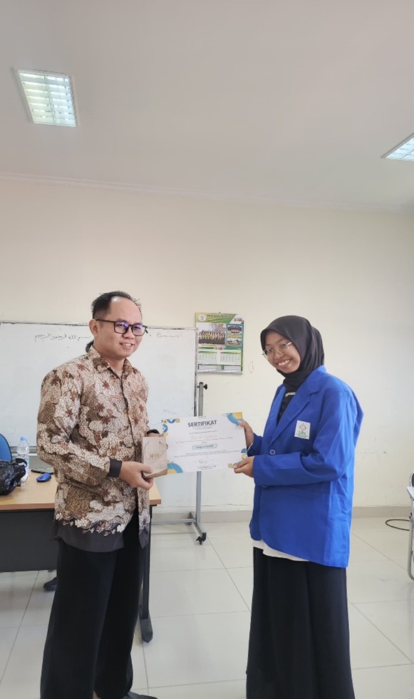 Sebagai bentuk apresiasi, pada akhir kegiatan dilakukan penyerahan penghargaan kepada mahasiswa Muhammad Hanif Zaini Mahfudz serta mahasiswi Nurul Auliya yang aktif dan konsisten dalam mengikuti program. Penghargaan ini diharapkan dapat memotivasi seluruh peserta untuk terus meningkatkan kualitas diri dan kontribusi dalam program.