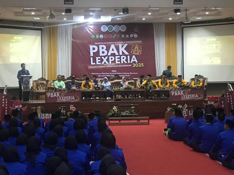 Banjarmasin – Suasana semangat dan antusiasme menyelimuti Auditorium Mastur Jahri UIN Antasari Banjarmasin saat 269 mahasiswa baru mengikuti pembukaan Pengenalan Budaya Akademik dan Kemahasiswaan (PBAK) Lexperia Fakultas Syariah tahun 2025, Kamis (21/8/2025).