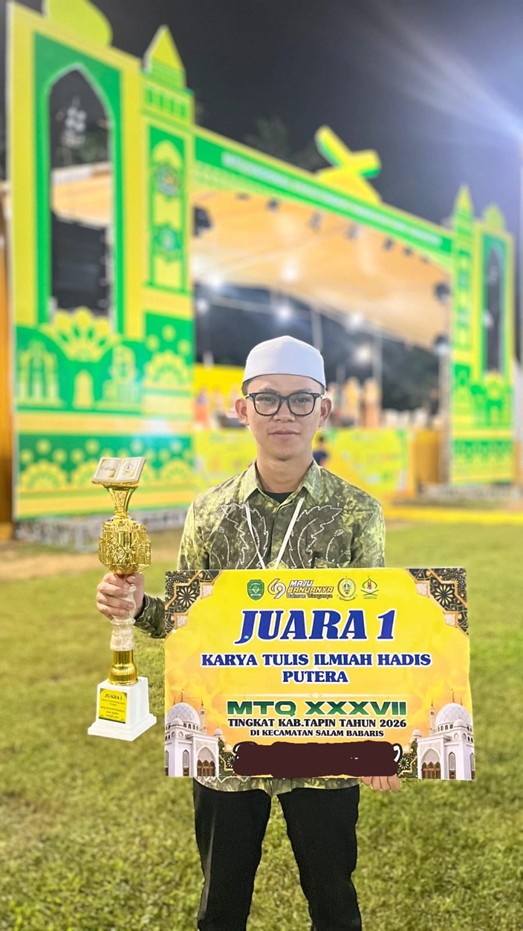 Prestasi membanggakan kembali ditorehkan oleh mahasiswa Program Studi Hukum Keluarga Islam. Muhammad Taha Madani berhasil meraih Juara 1 pada cabang Karya Tulis Ilmiah Hadis Putera dalam ajang Musabaqah Tilawatil Qur’an (MTQ) ke-XXXVII tingkat Kabupaten Tapin tahun 2026 yang diselenggarakan di Kecamatan Salam Babaris.