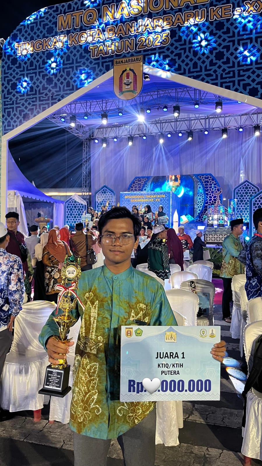 Pada cabang KTIH, Ahmad Zaid berhasil meraih predikat Terbaik 1. Ia menyampaikan rasa syukur dan bahagia atas capaian tersebut. “Puji syukur kepada Allah, tahun ini saya kembali diberi amanah hasil terbaik. Semoga saya bisa kembali mewakili Kota Banjarbaru di tingkat Provinsi Kalimantan Selatan pada MTQ 2026 dan bisa membawa Banjarbaru kembali juara 1 lagi, aamiin,” ujarnya.